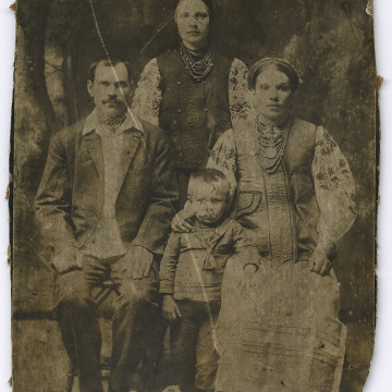 Фото. Родина біля воза з волами в полі