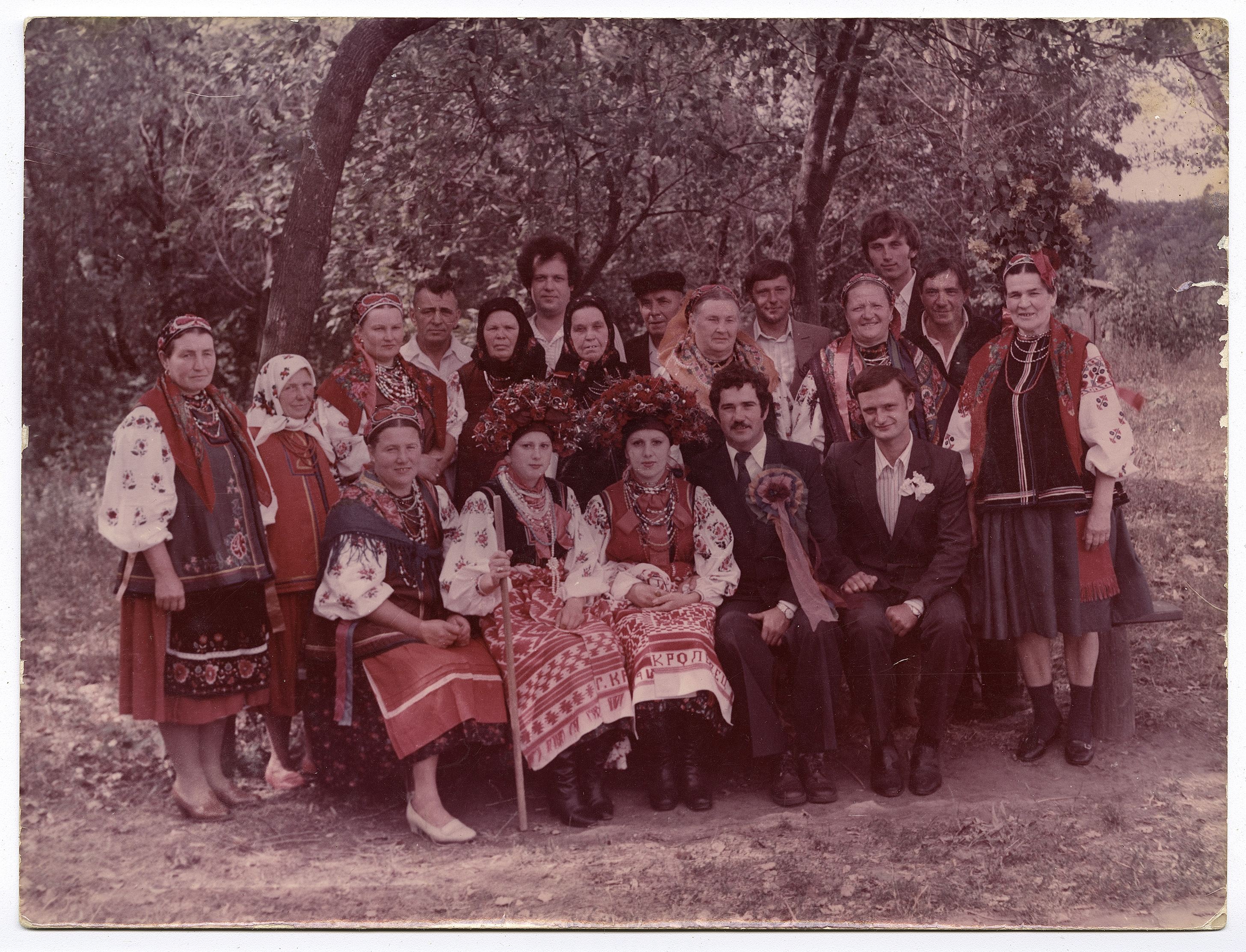 Photo. A girl, Vera Shuliak (Vitiuk), wearing a flower crown with ribbons