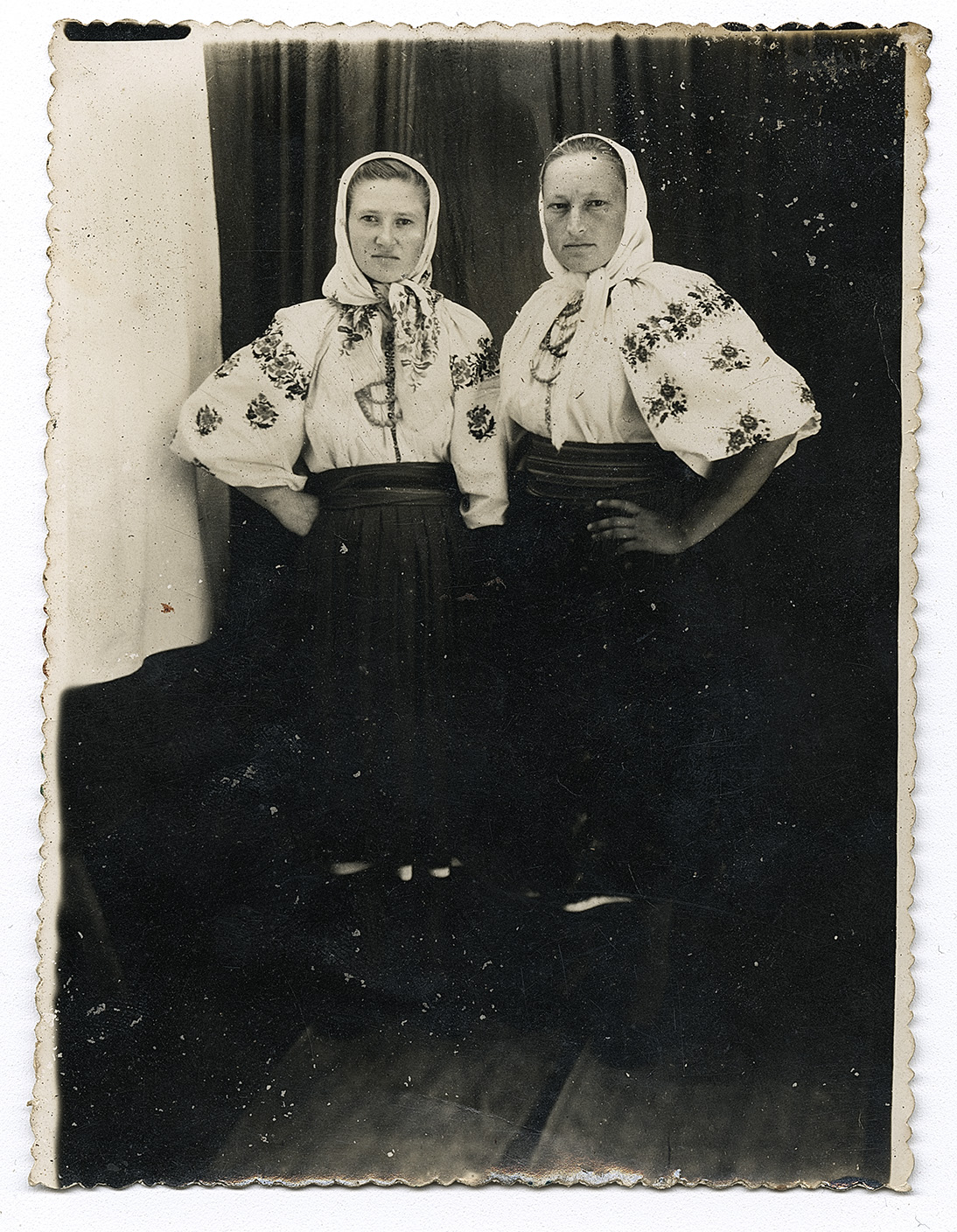 Photo. A mother with her baby and two young women wearing folk attire